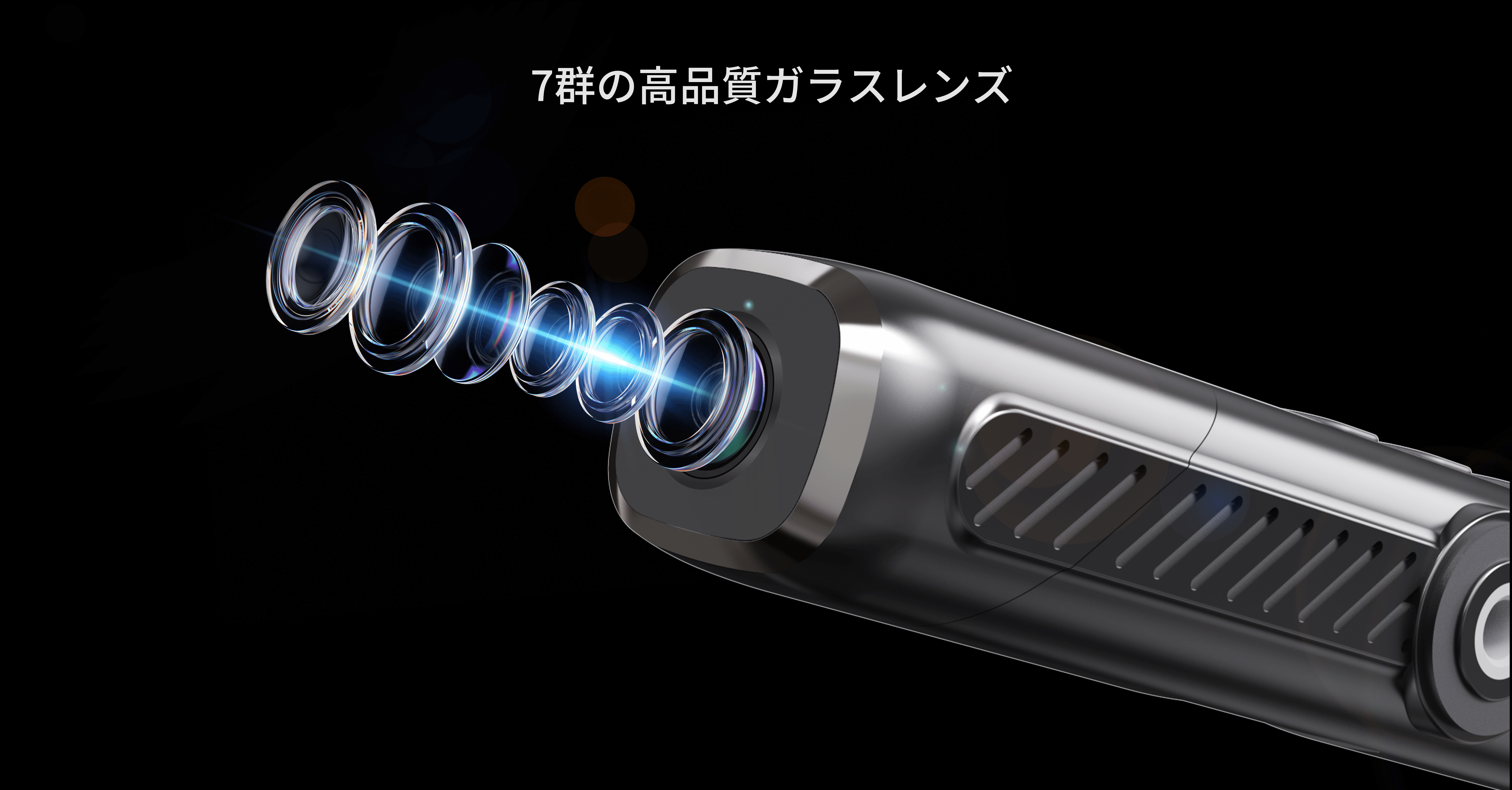レンズ構成には7群の高品質ガラスレンズを使用。